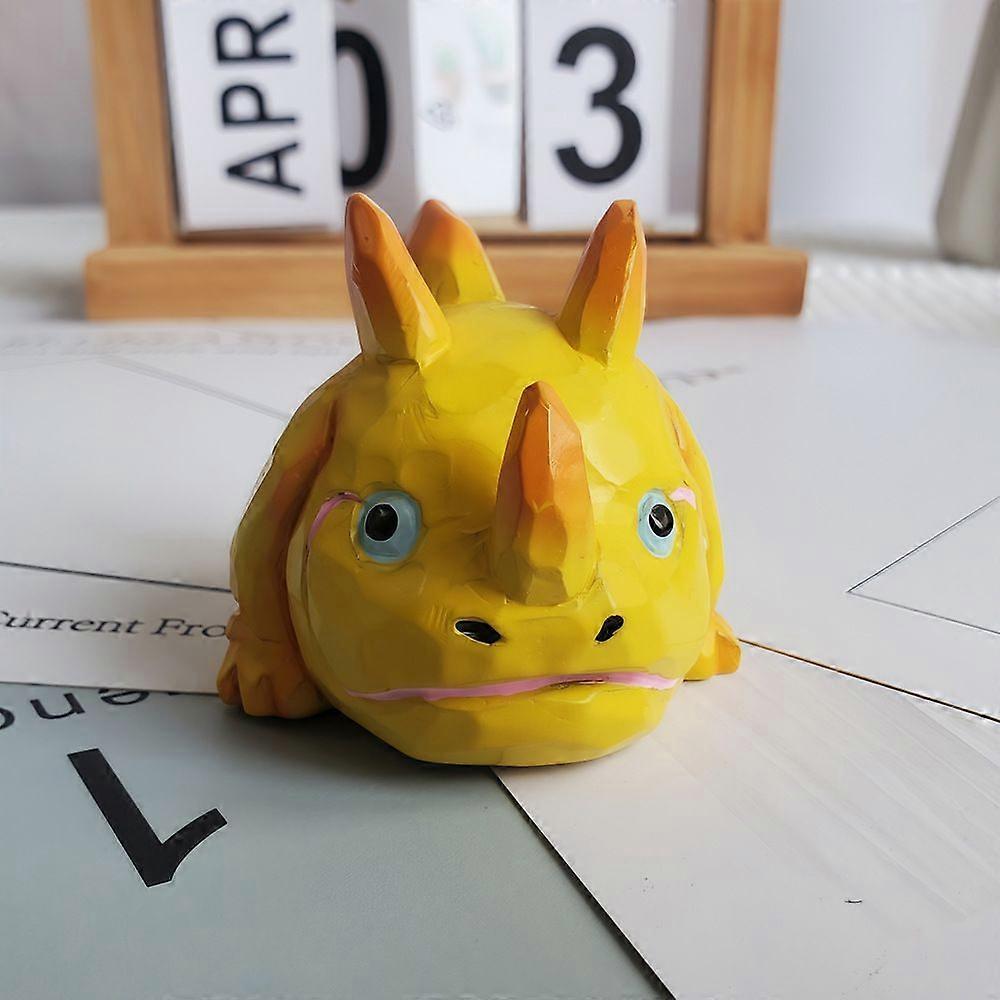 Wood Carving Style Rhino Cute Cute Pet Creative Cartoon Long Horned Animal Cow Desktop Resin Doll Ornaments
