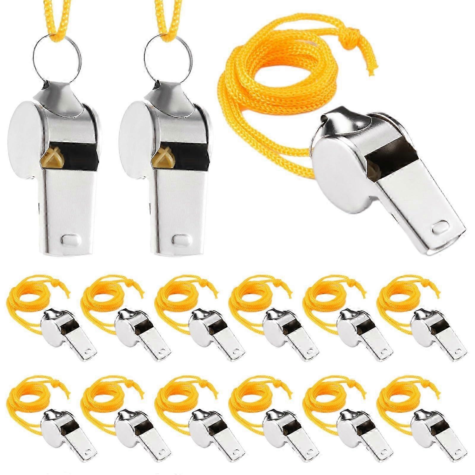A. Sufficient Quantity & Convenient Usage: You will receive 100 metal referee whistles in total. With an adequate quantity, this whistle set ensures you are well-equipped for extended use. Each whistle is accompanied by a 13.8-inch long lanyard, facilitating easy wearing around the neck. B. Clear & Distinct Sound Production: Equipped with a butterfly mouthpiece and a ball pea, our whistle allows for stable airflow, generating a clear and penetrating sound that can easily be heard over crowd noise and environmental distractions. Whether in a stadium or the great outdoors, your signal will be audible. C. Polished Surface for Safety & Comfort: Our whistles undergo meticulous polishing to ensure both safety and comfort. The smooth finish provides a pleasant mouthfeel, avoiding discomfort or scratches during use. Additionally, the smooth surface ensures a secure and comfortable grip when blowing the whistle. D. Durable & Rust-Resistant Stainless Steel: Constructed from stainless steel, these whistles offer good strength and durability. They are designed to withstand wear, resist impacts, and prevent corrosion and rust, making them reliable companions for numerous sports events and activities.