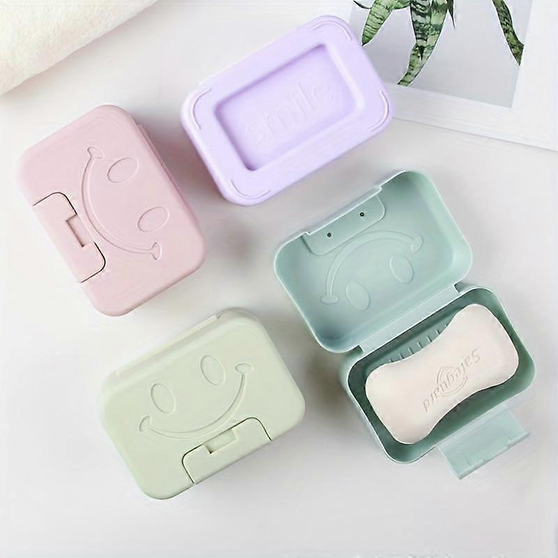 1pc Soap Dish Non-punch Household Cute Soap Dish with Lid, Solid Color Travel Soap Holder, Expression Detail Soap Dish Container for Home Ba