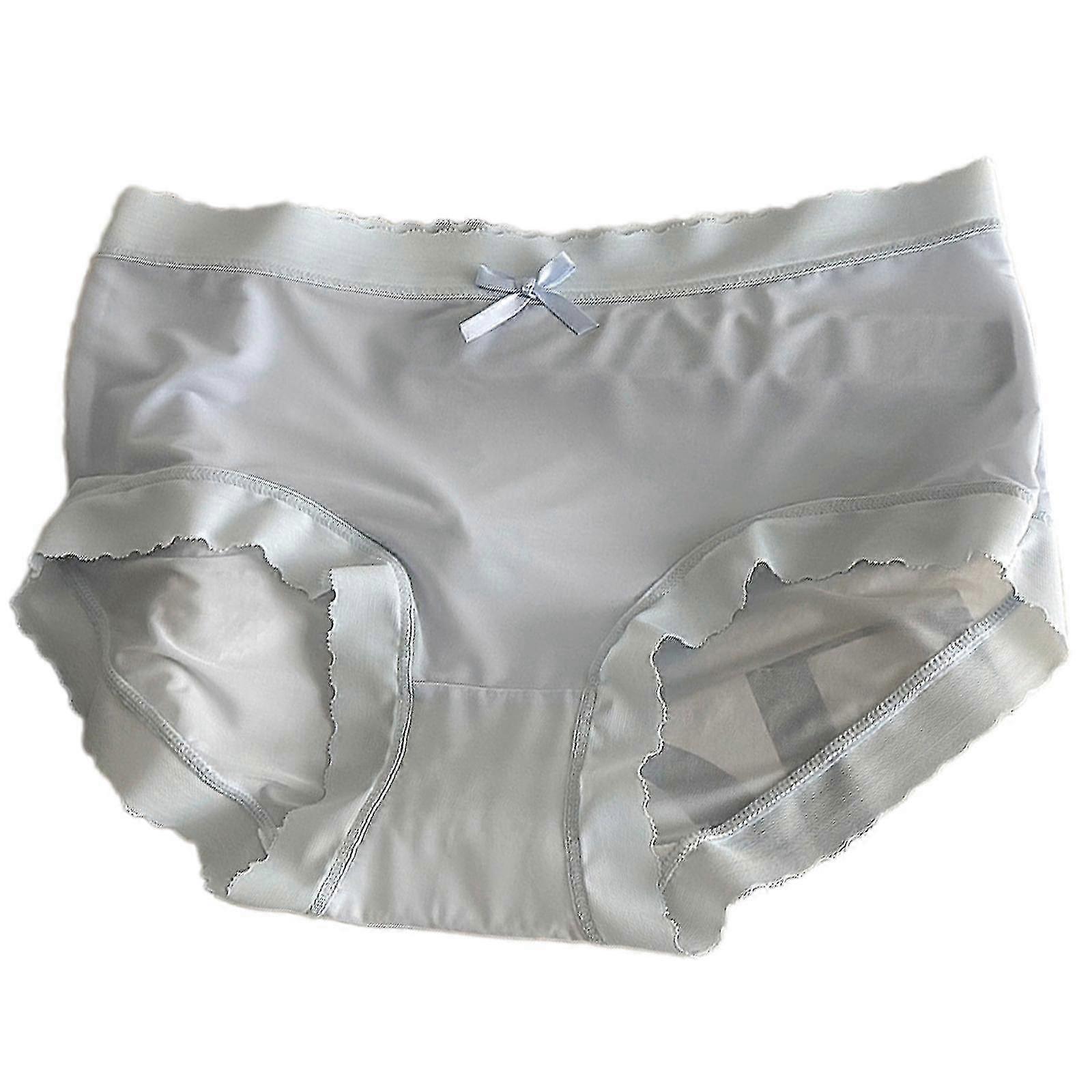 Women's Middle Rise Solid Color Ice Silk Briefs Fashion Sweet Bows Panties Underwear Scalloped Trim No Show Underpants Blue XL