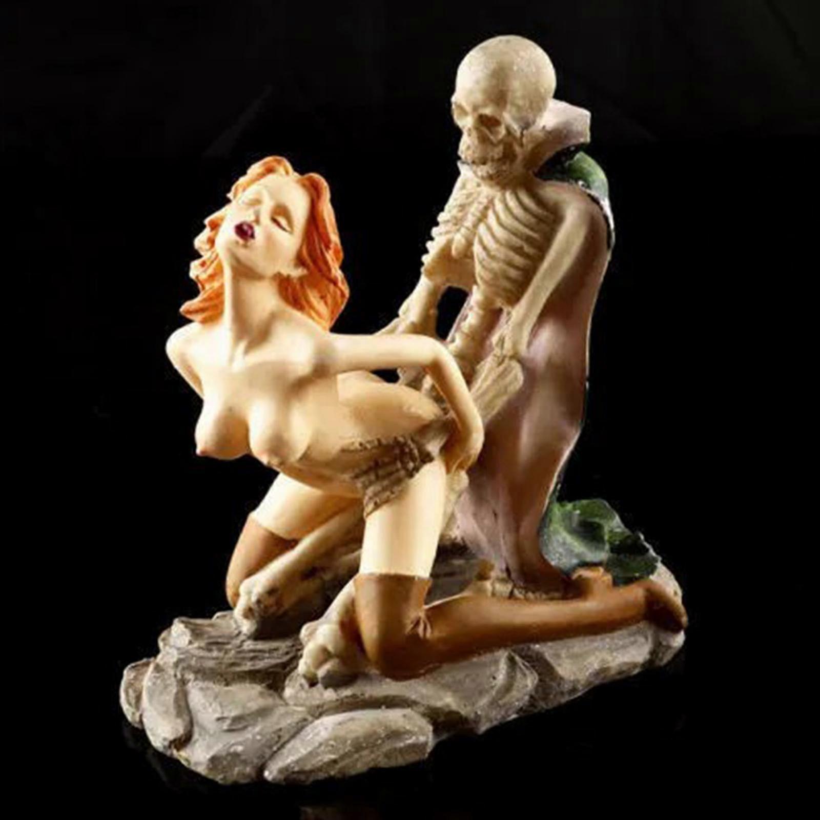 Skeleton Lovers Skulls Statue Erotic Couple Figurine Resin Sculpture--