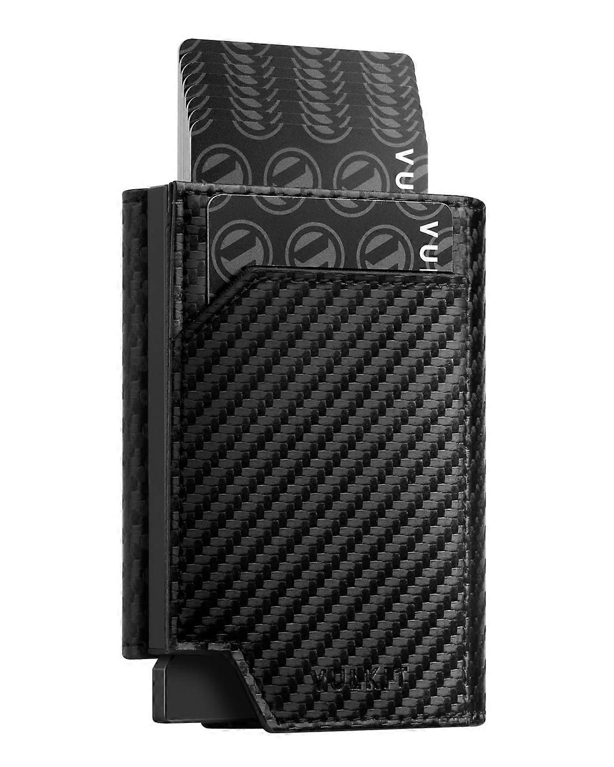 Men's Leather RFID Blocking Pop Up Card Wallet with Coin Pocket, Carbon Fibre Card Holder