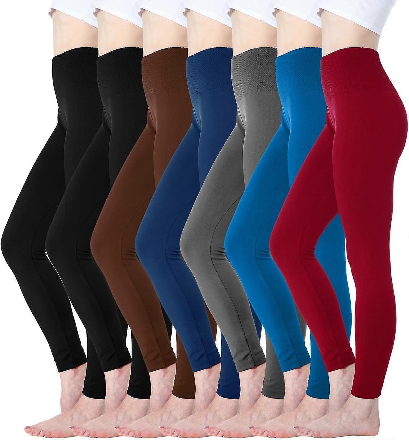 7 Pack Fleece Lined Leggings Womens Fashion High Waist Tummy Control Leggings for Women Wi
