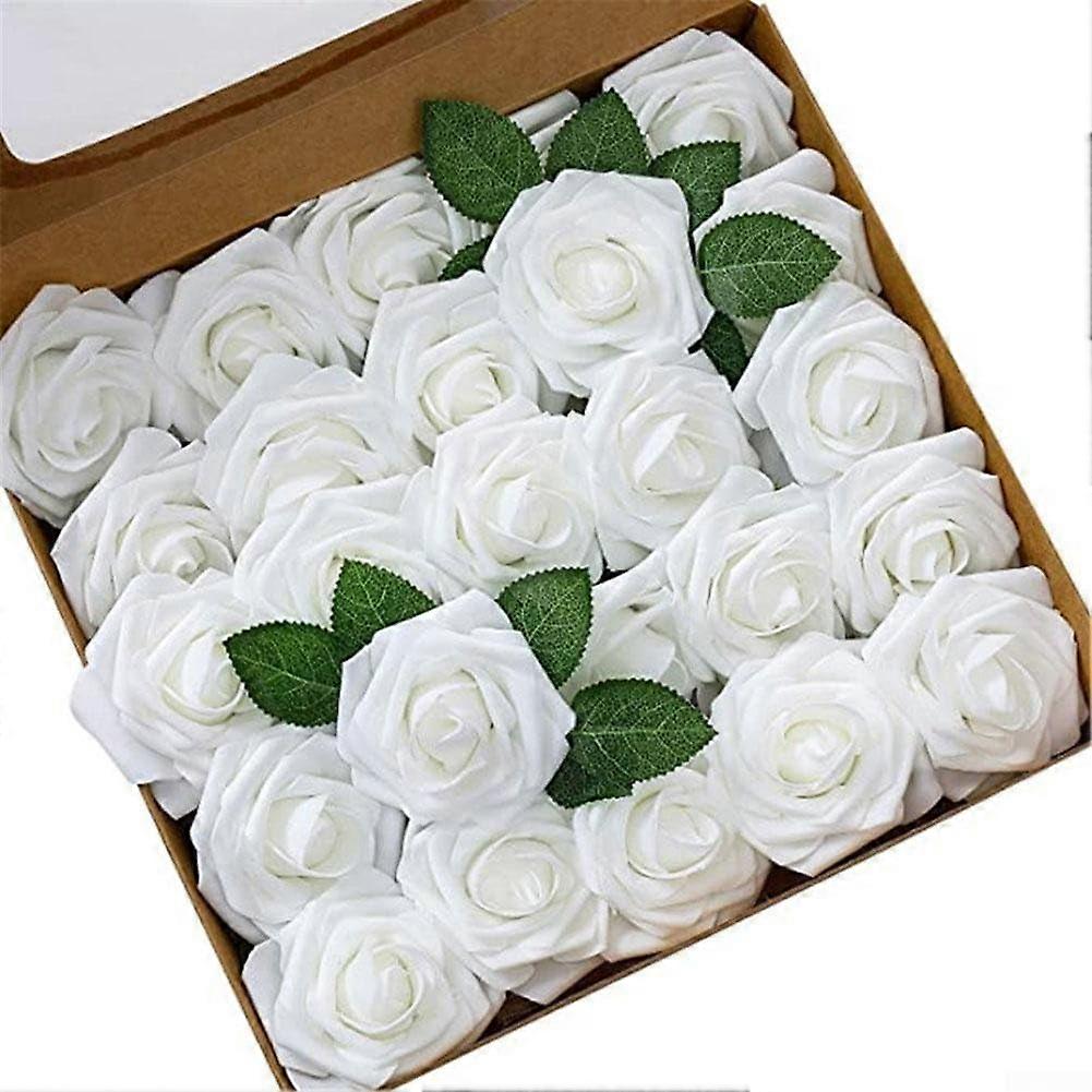 Artificial Foam Roses with Stems Set of 25 for Wedding Decoration, DIY Crafts and Home Floral Arrangements (White)