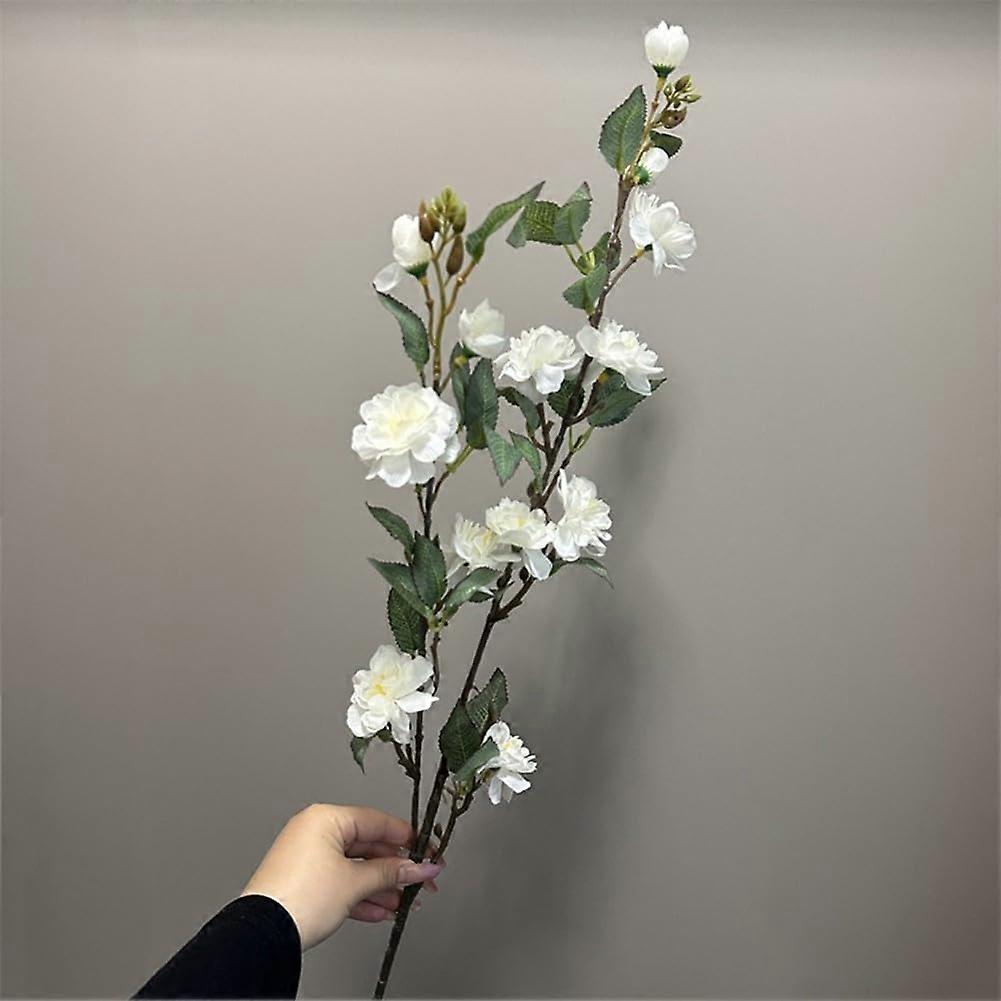 Artificial Rose Bouquet with 14 Heads, 90cm Plastic Wedding Flowers for Home Decor (White)