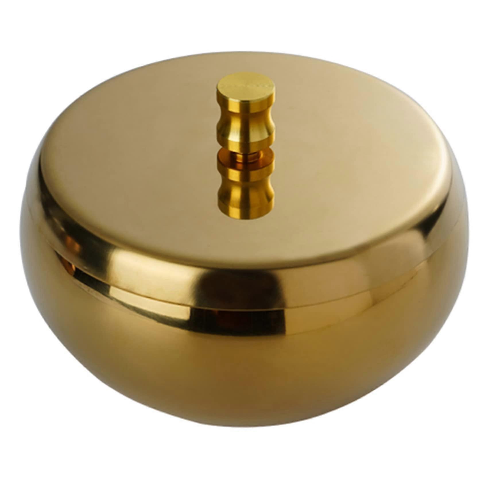 Outdoor Ashtray with Lid, Windproof Flip Stainless Steel Smoking Ashtray for Home Patio Office (Round Gold)