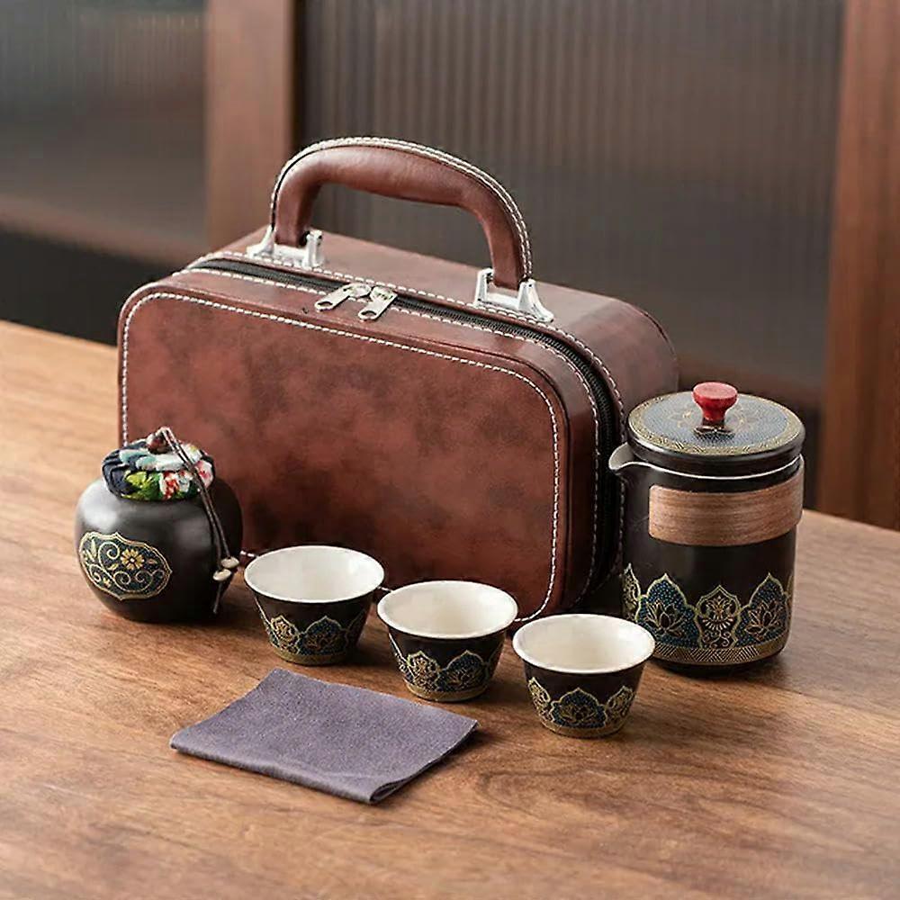 Travel Tea Set Portable Kung Fu Style with Teapot and Cups for Outdoor Tea Ceremony