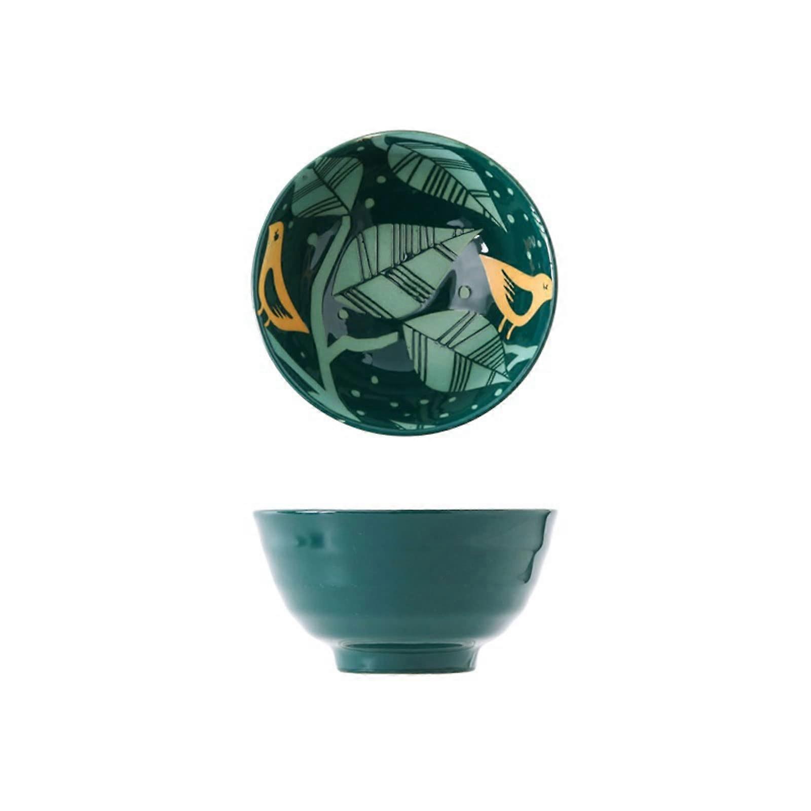 Ceramic Rice and Soup Bowl 4.5 Inch Threaded Design AntiScald Glaze for Home Dessert Serving (C)