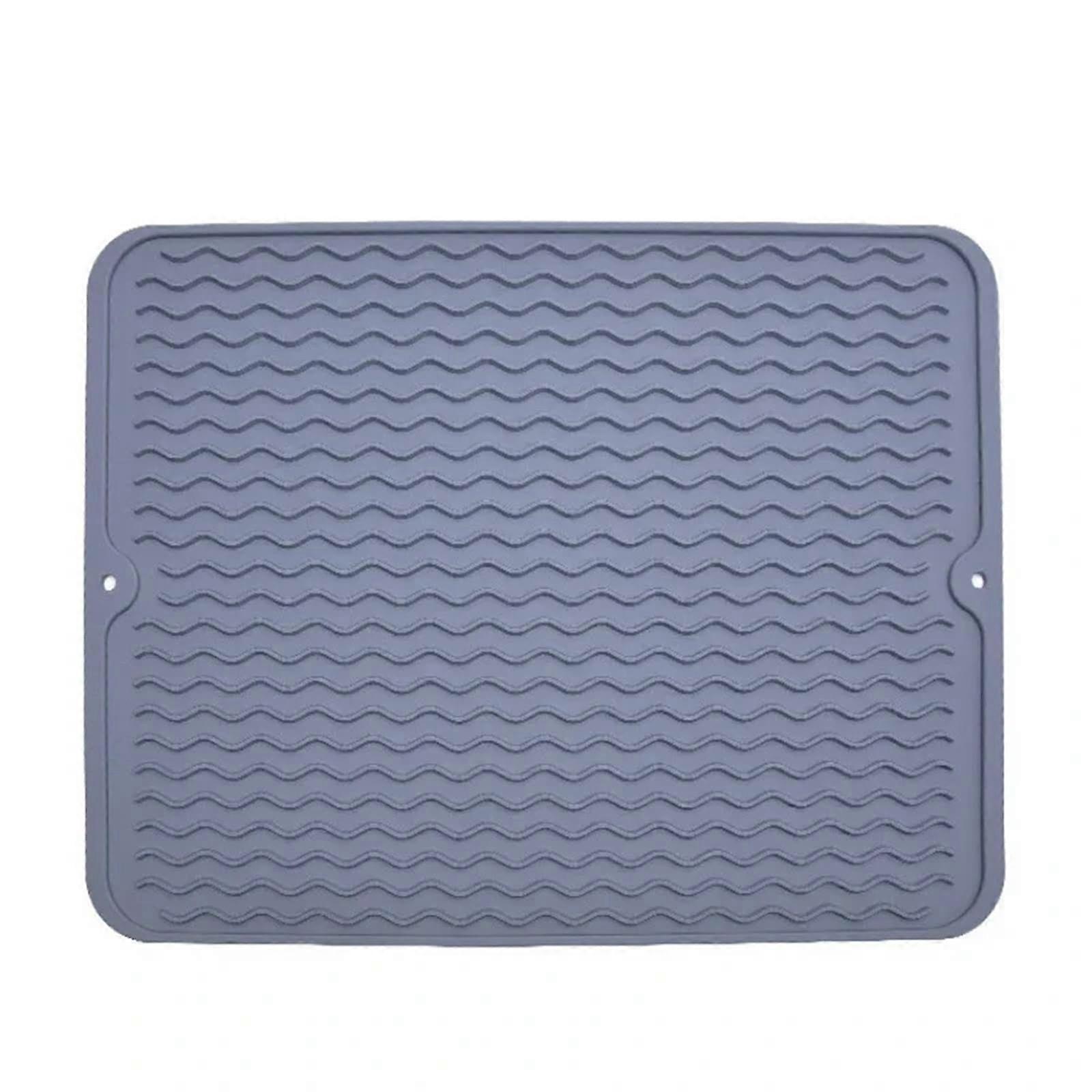 Silicone Dish Drying Mat NonSlip Heat Resistant Draining Pad for Kitchen Counter 40x30cm Grey