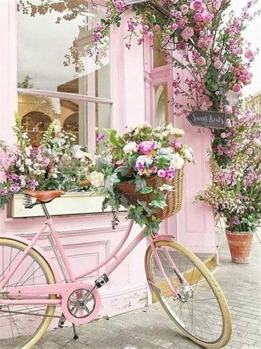 Diamond Painting Kit 5D Pink Bicycle Full Drill DIY Art for Adults Christmas Wall Decor 24x32in