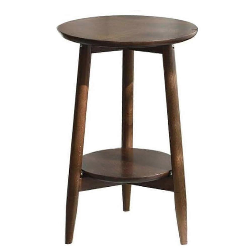 Round Wood Side Table with 2Tier Storage Shelves for Living Room or Bedroom, M Brown