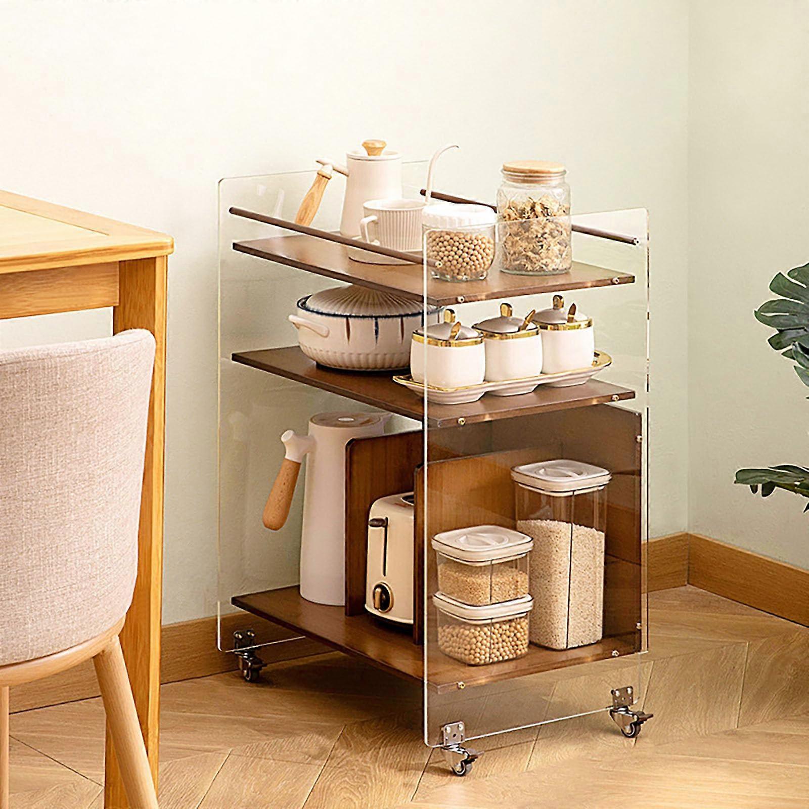 Wheeled Storage Rack Freestanding Kitchen Cabinet 50x36x70cm Brown Open Storage Large Capacity Home Organization