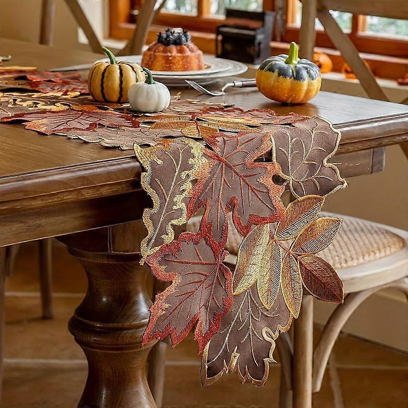 Embroidered Leaves Table Runner for Thanksgiving, Autumn Harvest Decor, Perfect for Fall Table Settings and Seasonal Celebrations