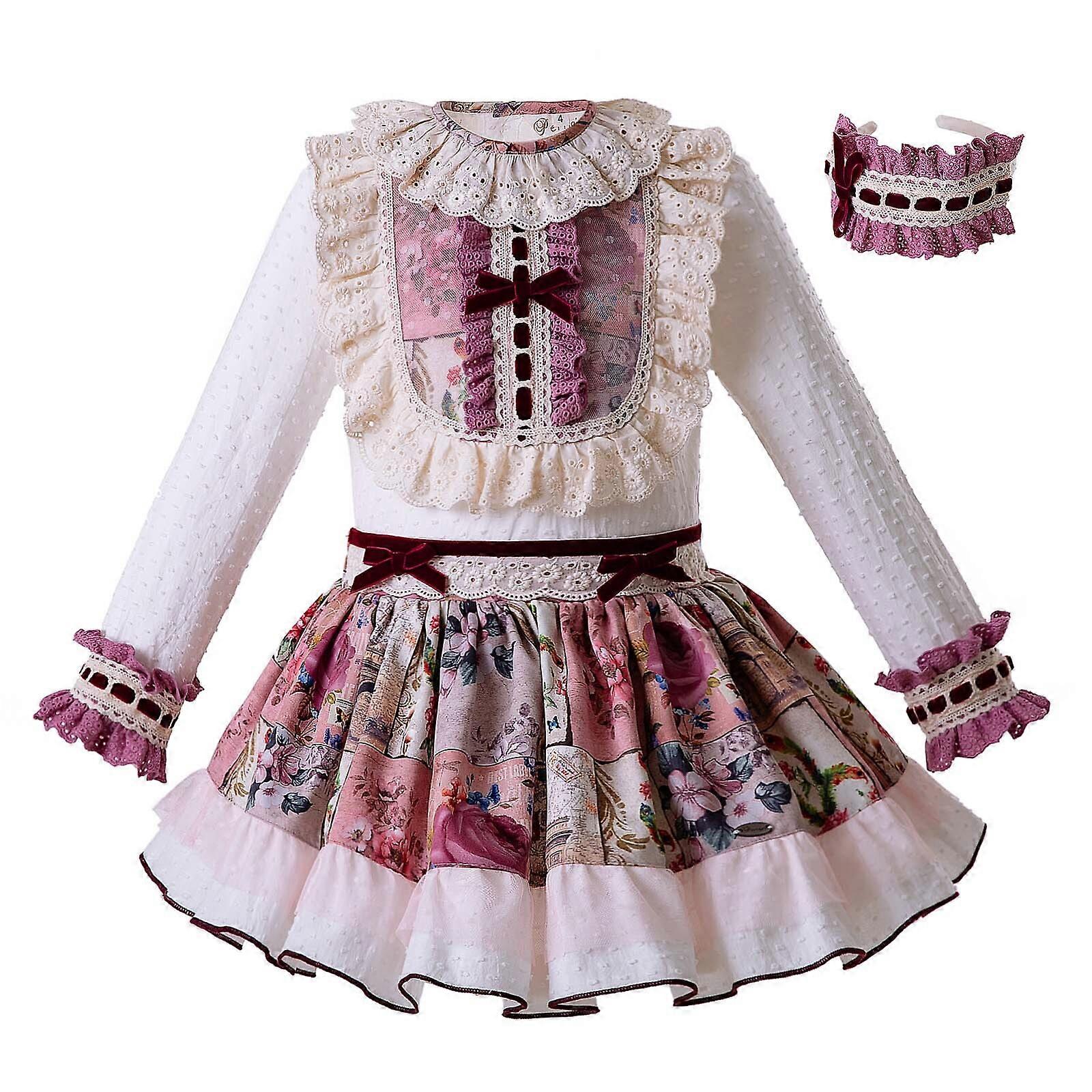 Pettigirl Girls Christmas Floral Outfits Blouse+Skirt Long Sleeve Size 3-12 Year