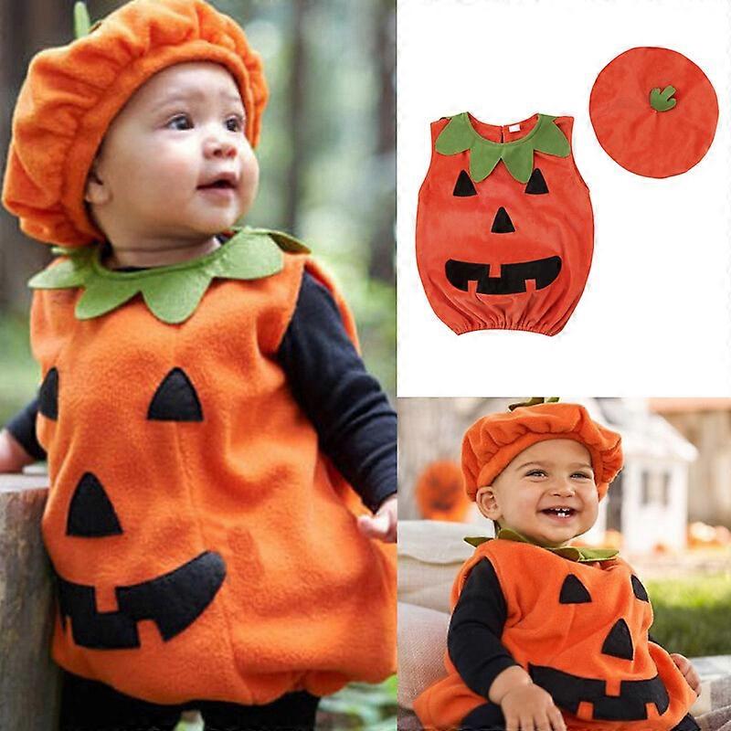 Newborn Baby Boys Girls Halloween Clothes Sleeveless Pumpkin Romper Hat Outfits