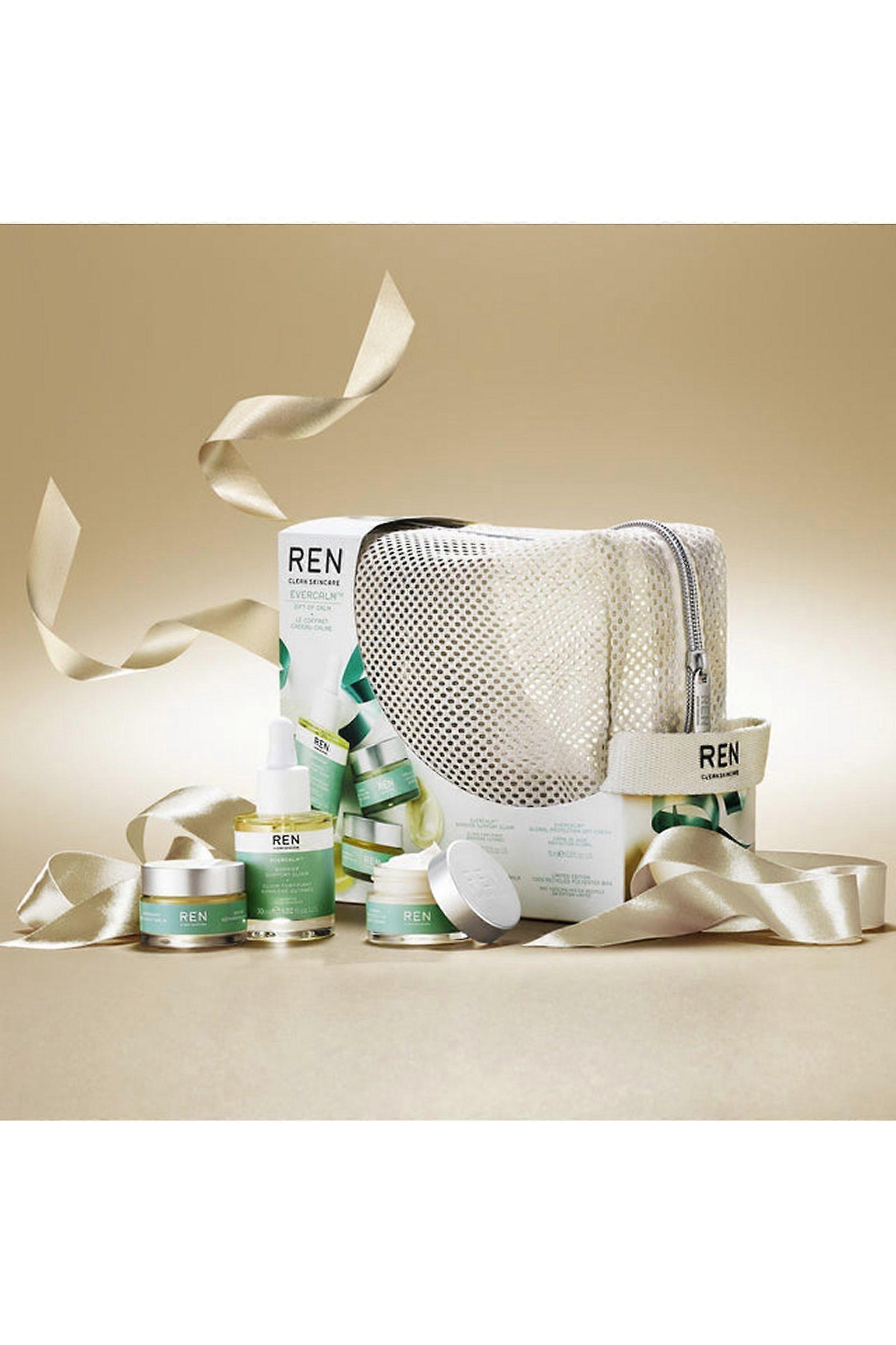 Ren Clean Skincare Evercalm Ren Gift of Calm Set - Recovery Balm 15ml Support Elixir 30ml, Day Cream 15ml+ Bag