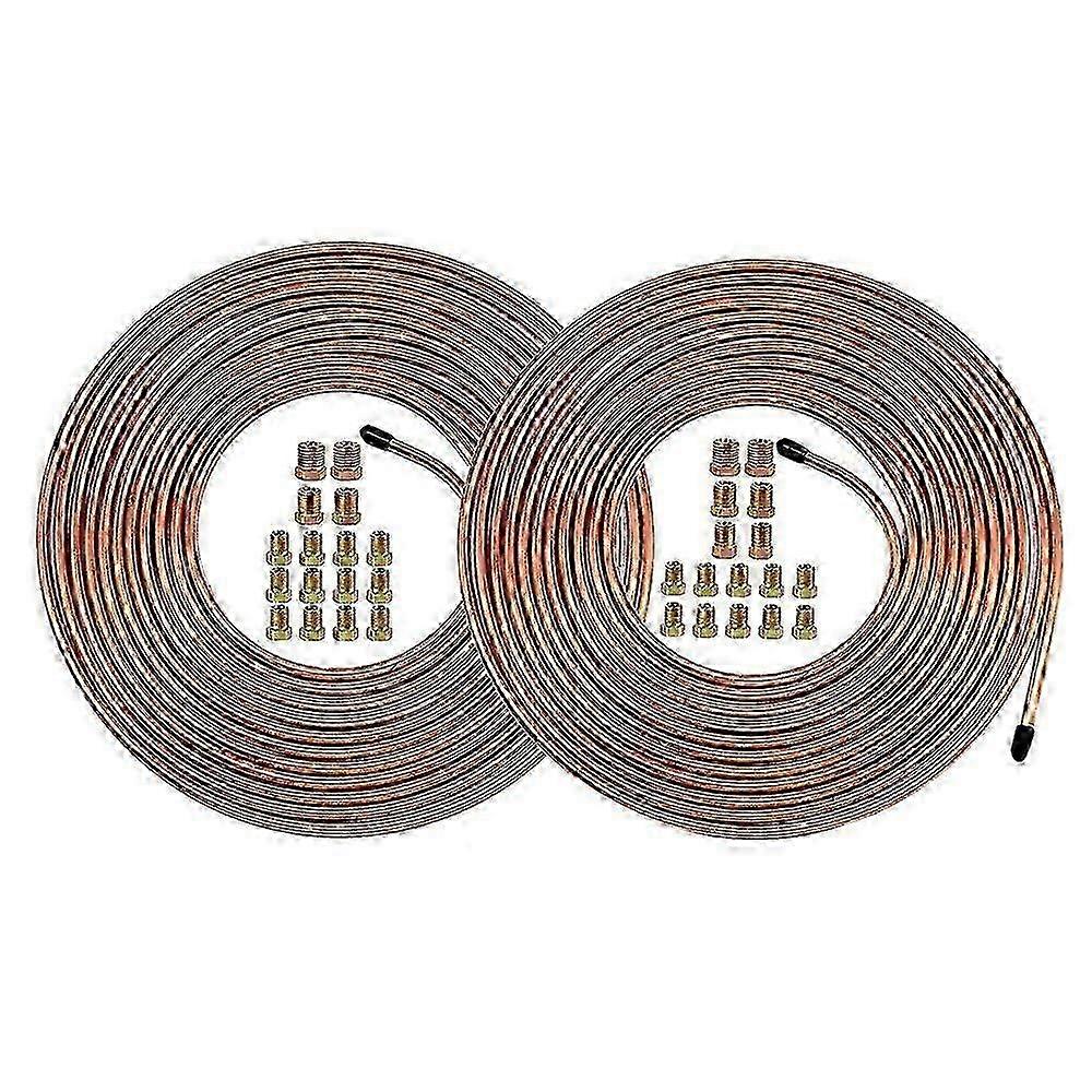 1/4 Inch Brake Pipe Copper Tubing 25 Ft Kit with 32 Nuts for Mechanics