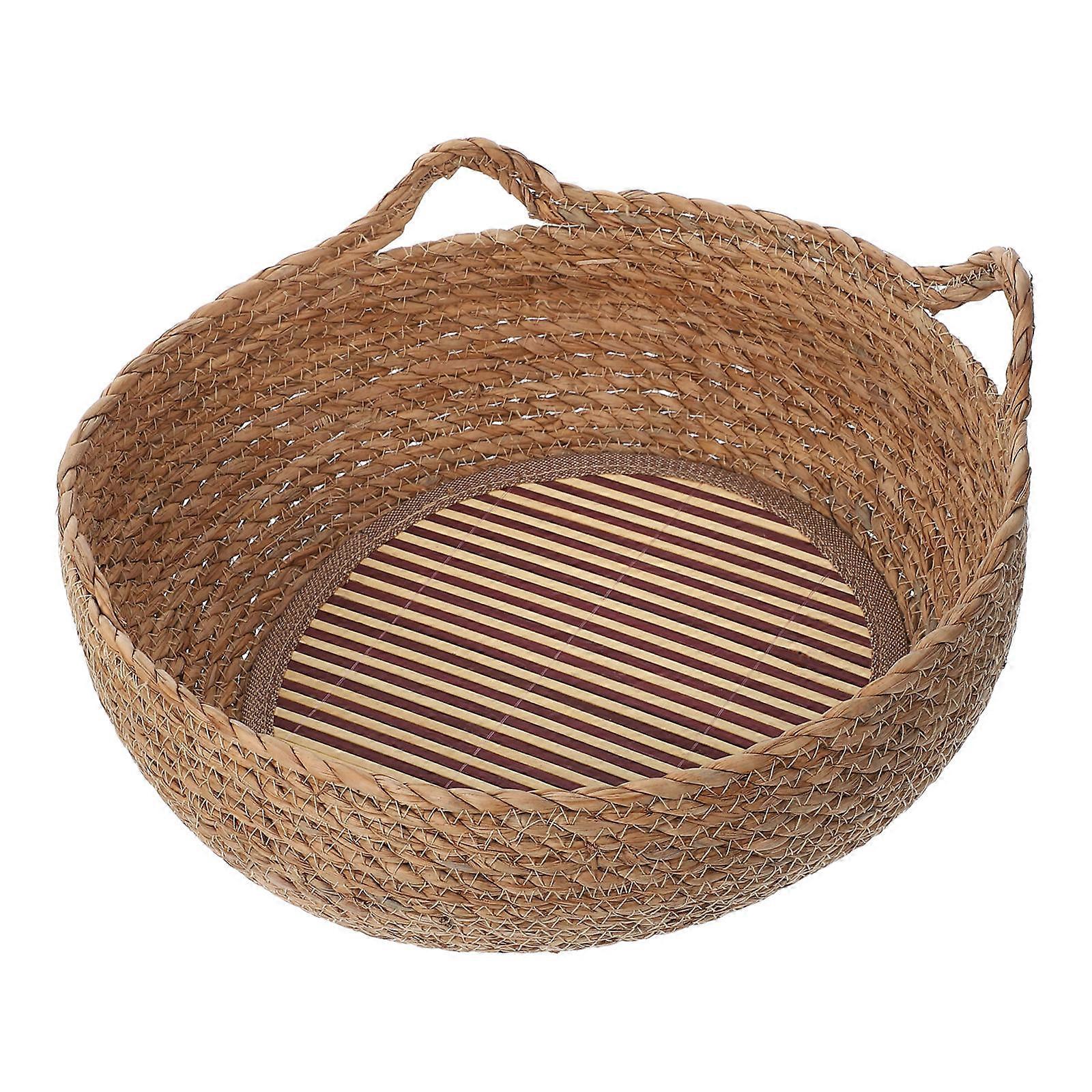 Woven Cat Bed Cat Round Basket Indoor Use Straw Material 14.4×13.6×4.3in Cozy Retreat 1Set