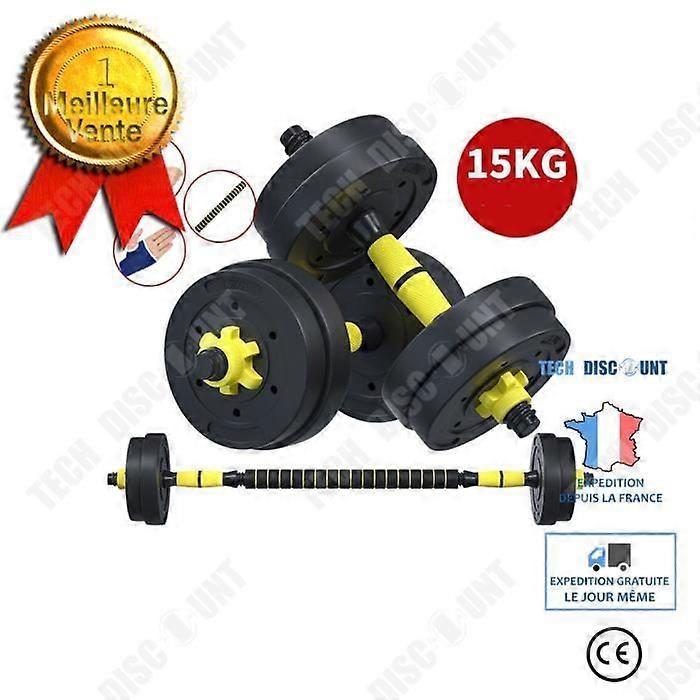 product name: Men's environmental protection dumbbell home fitness equipment Removable- 15kg Weight: 15kg * 1 composition: Dumbbell: 2kg * 4 + 1.5kg * 4 Anti-slip bar: * 2 Connecting rod 35cm * 1 Nut *4 TWO-IN-ONE MULTIFUNCTION DUMBBELL DESIGN: This adjustable dumbbell has a connecting rod, which can be easily transferred to the bar in seconds.