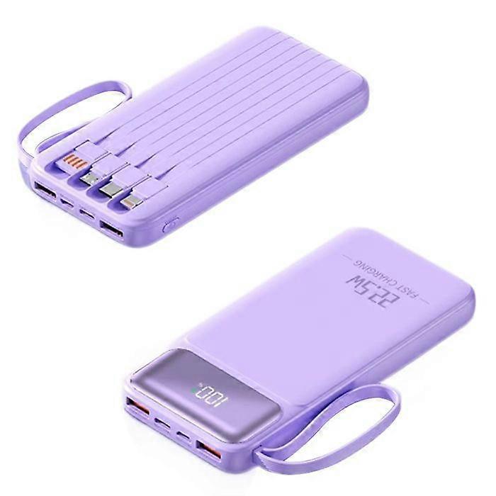 Ultra-slim fast charging version of the LUNAVO 10000 mAh mobile power bank in Purple with digital display.