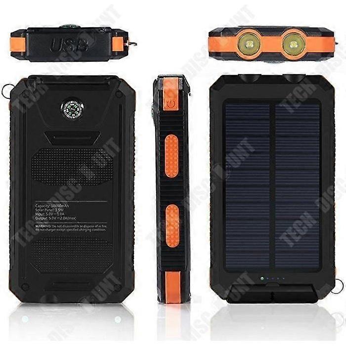 Solar External Battery Charger - LUNAVO - 15000mAh - 2 USB Ports - LED SOS - IP67