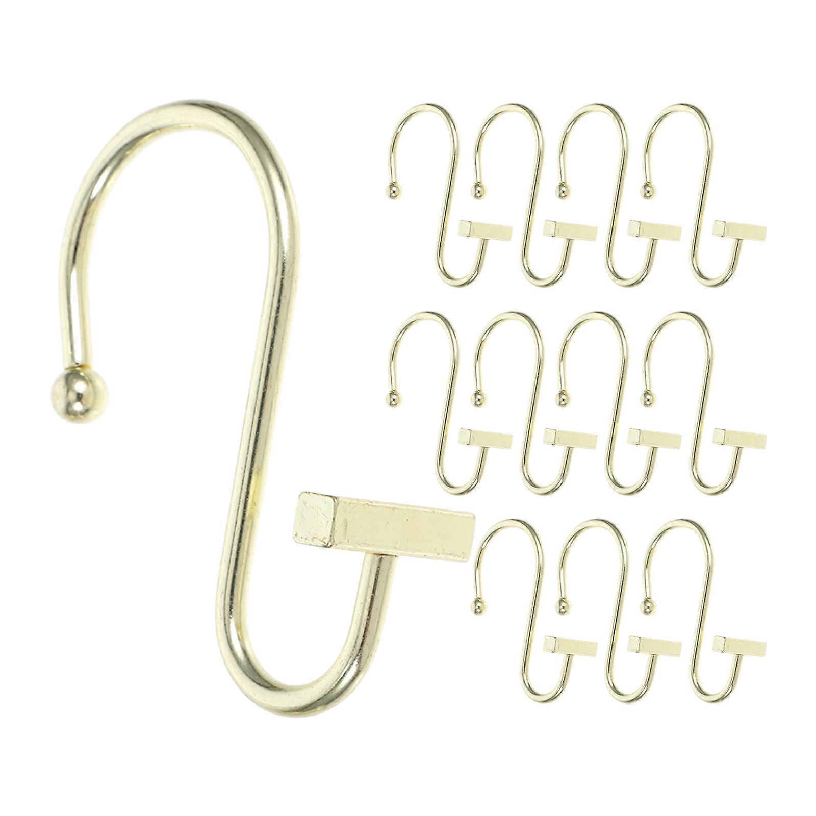 Bathroom Use Metal Shower Curtain Hooks 12Pcs S-Shape Sliding Hooks