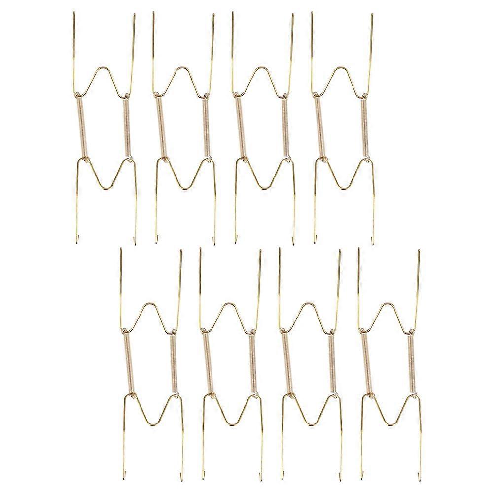8Pcs Plate Holder Wall Hooks in Golden Steel for Hanging Plates and Display