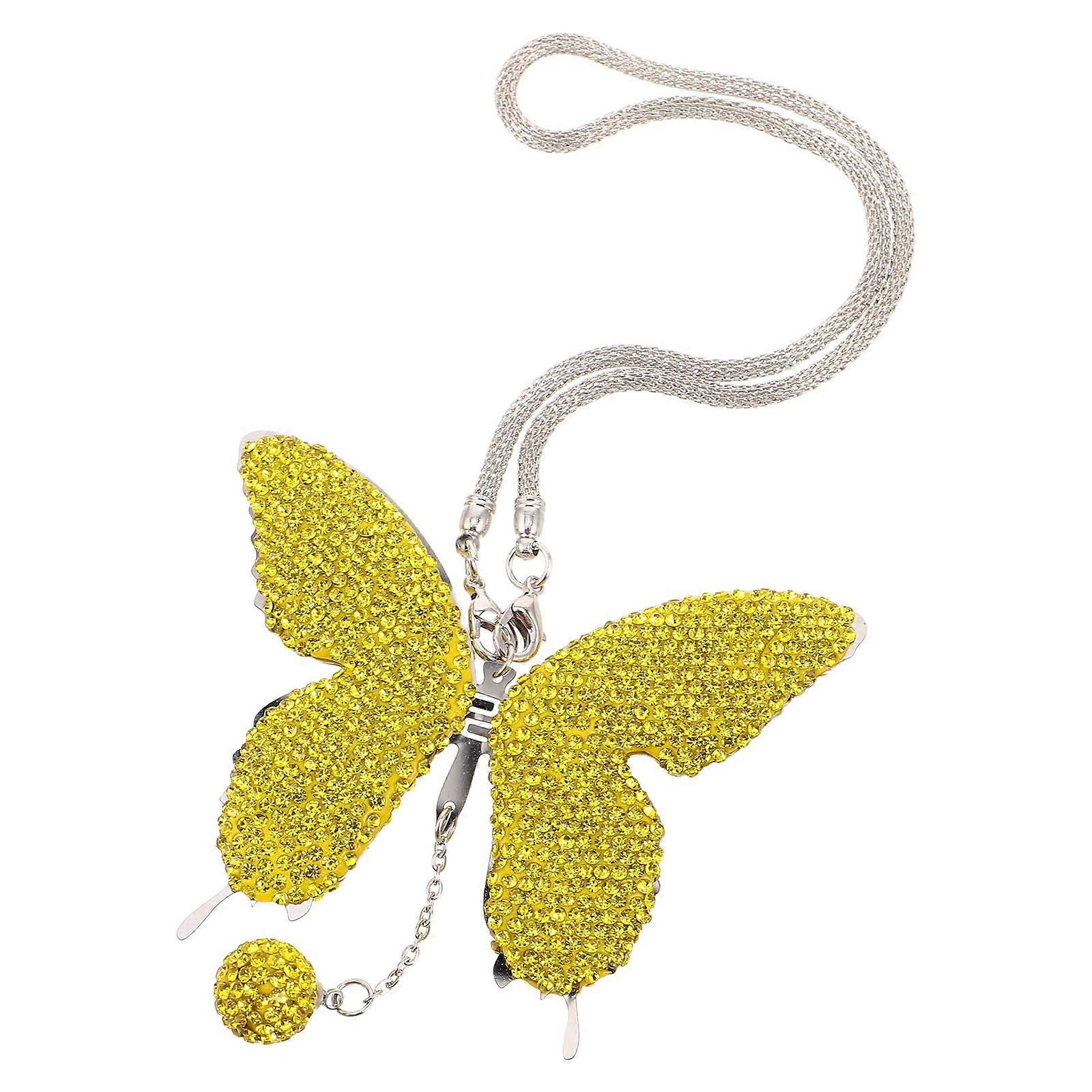 Butterfly Car Rear View Mirror Pendant Yellow Rhinestone for Decoration
