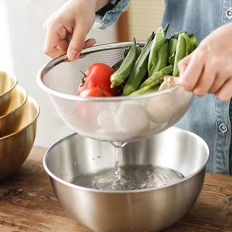 Stainless Steel Colander Set, 2 Counts Leak-proof Sink for Washing Dishes, Fine-hole Basin for Rinsing Vegetables, Water-leaking Basin for W