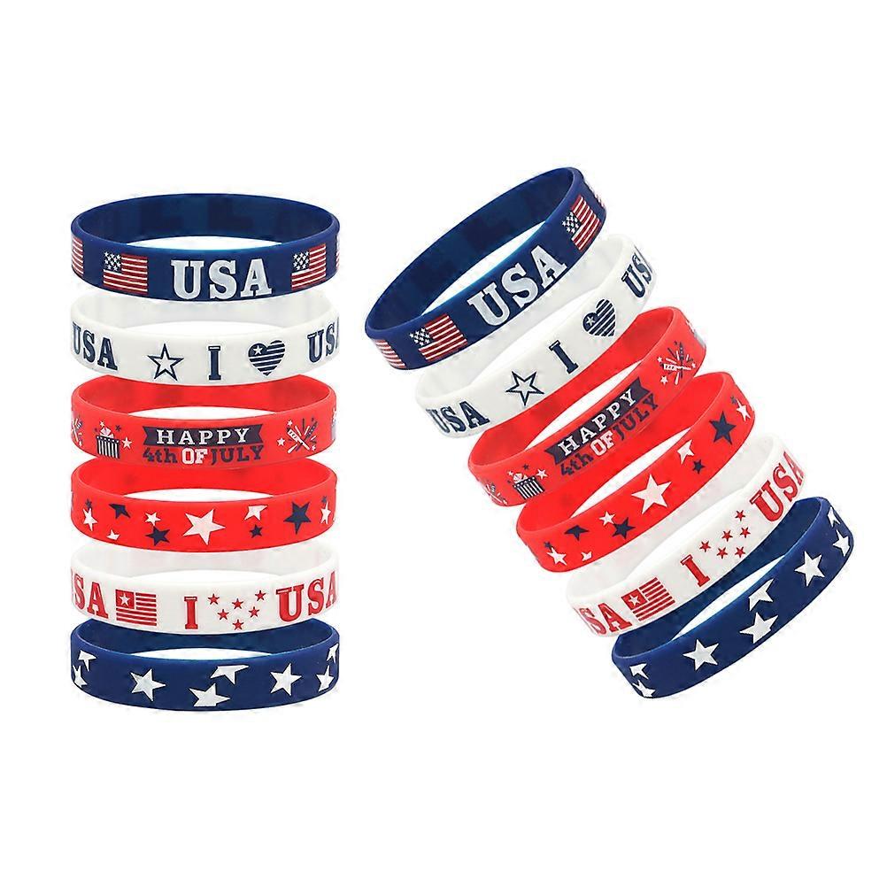 Independence Day Silicone Bracelet Party Wristband Assorted Colors 12Pcs