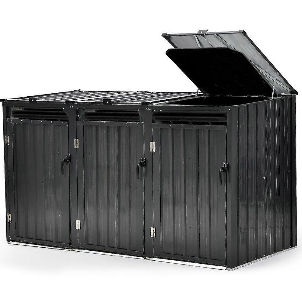 Triple Steel Wheelie Garbage Bin Storage Shed Enclosure With 3 Opening Doors Rubbish Bins