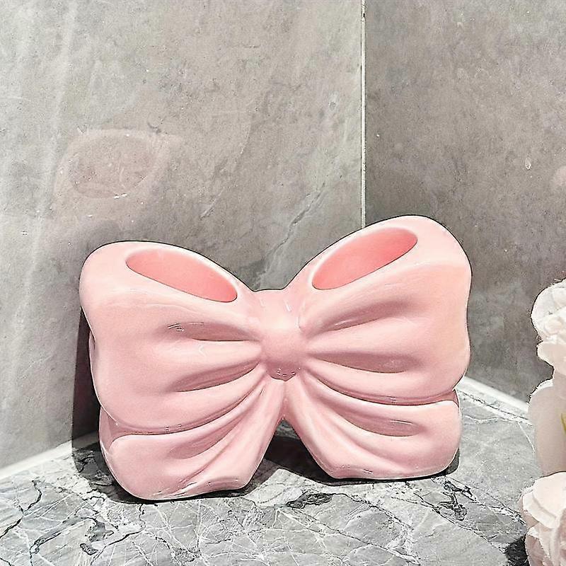 Bow Design Ceramic Toothbrush & Toothpaste Holder, 1 Count Double Slot Design Toothbrush Holder, Bathroom Vanity Storage Accessories