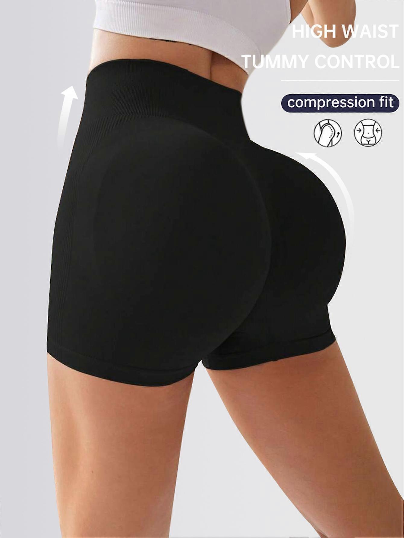 Women's High Waist Stretch Large Size Yoga Shorts Sports Running Seamless Black Hip Casual Pants Cycling Three Pants