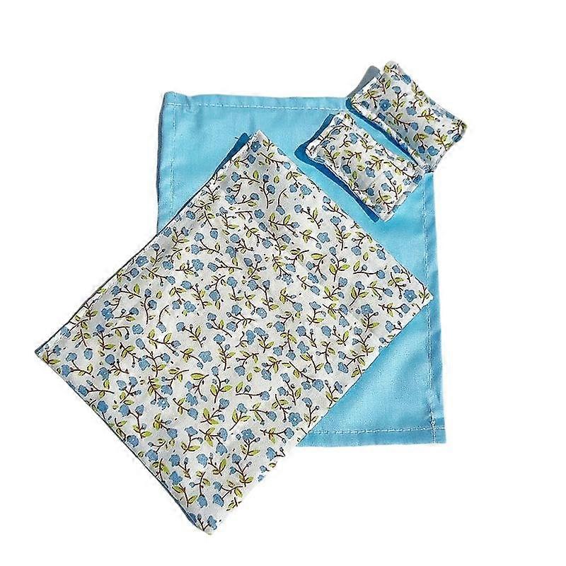 1/12 Dollhouse Miniature Bed Four Piece Bed Set Bed Sheet Quilt Pillow Quilt Cover Bedding Set Doll Bedroom Decoration Toy
