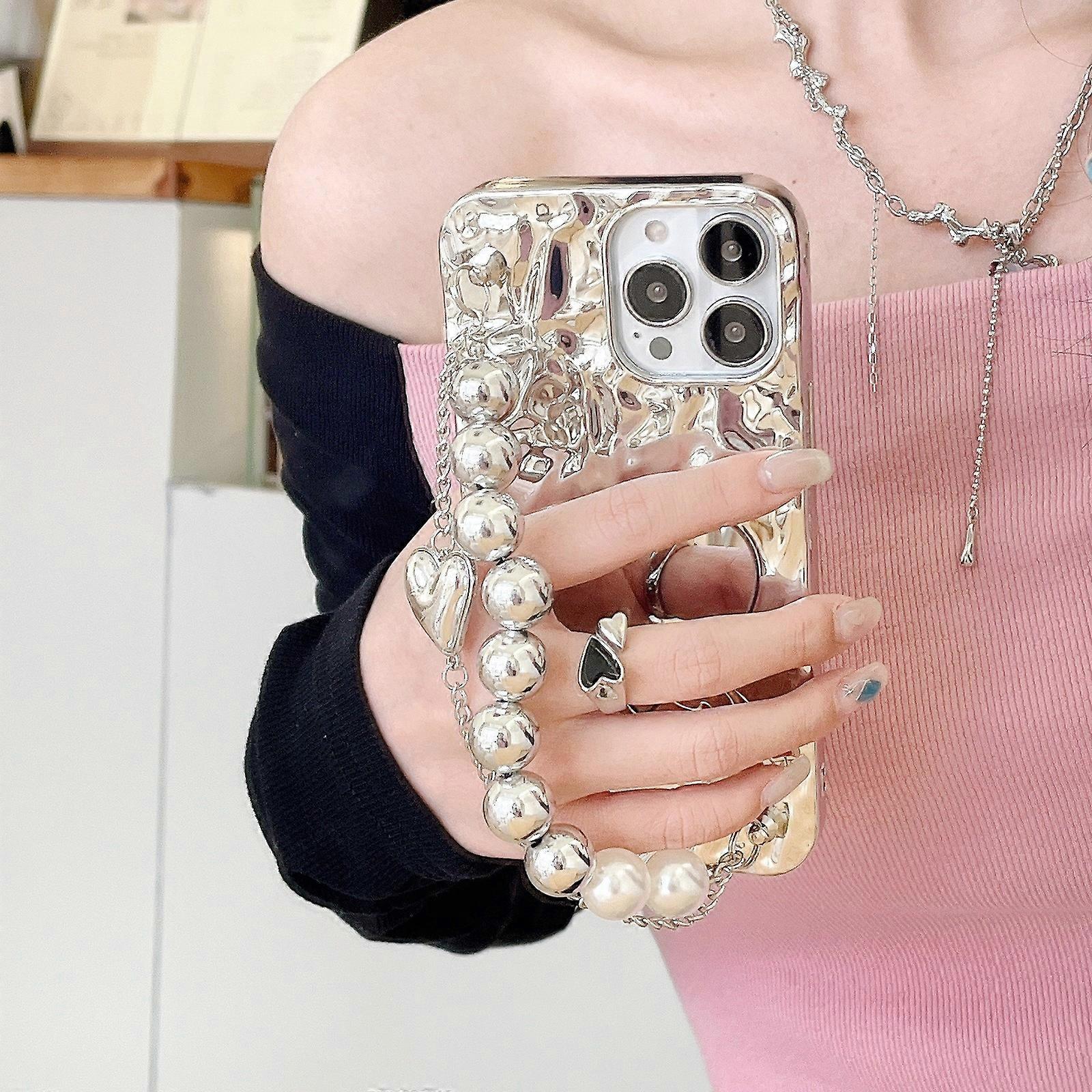 Love Heart Mirror WristChain Soft Case For iPhone 17 Air 16 15 14 13 12 Pro Max