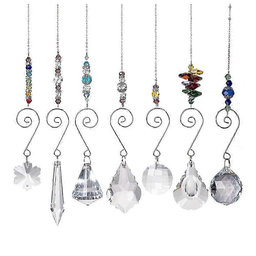 Set of 7 Crystal Sun Catcher Pendants for UK Garden, Home, and Window Decoration