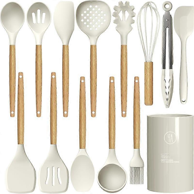 Cooking Utensils Set - 446?F Heat Resistant Kitchen Utensils for Cooking,Kitchen Utensil Spatula Set w Wooden Handles and Holder, Gadgets