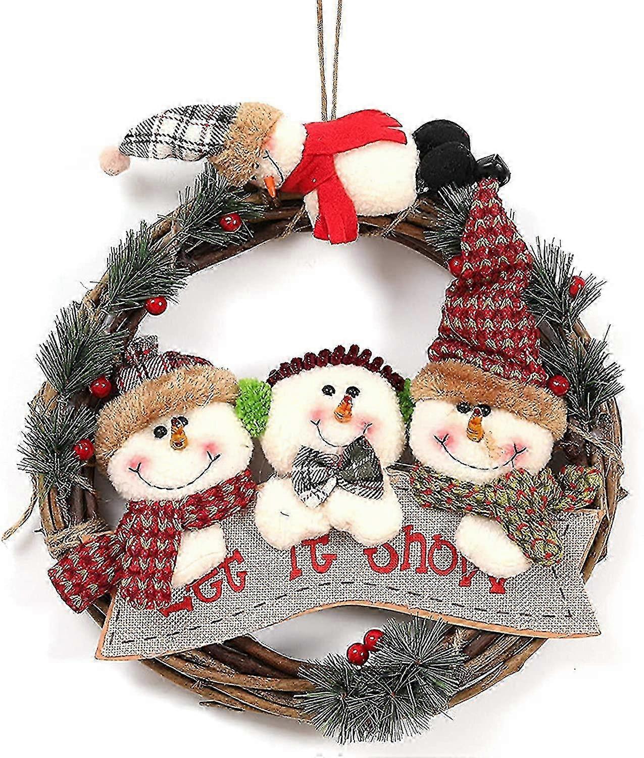 Front Door Christmas Wreath 29cm Rattan Snowman Hanging Decor