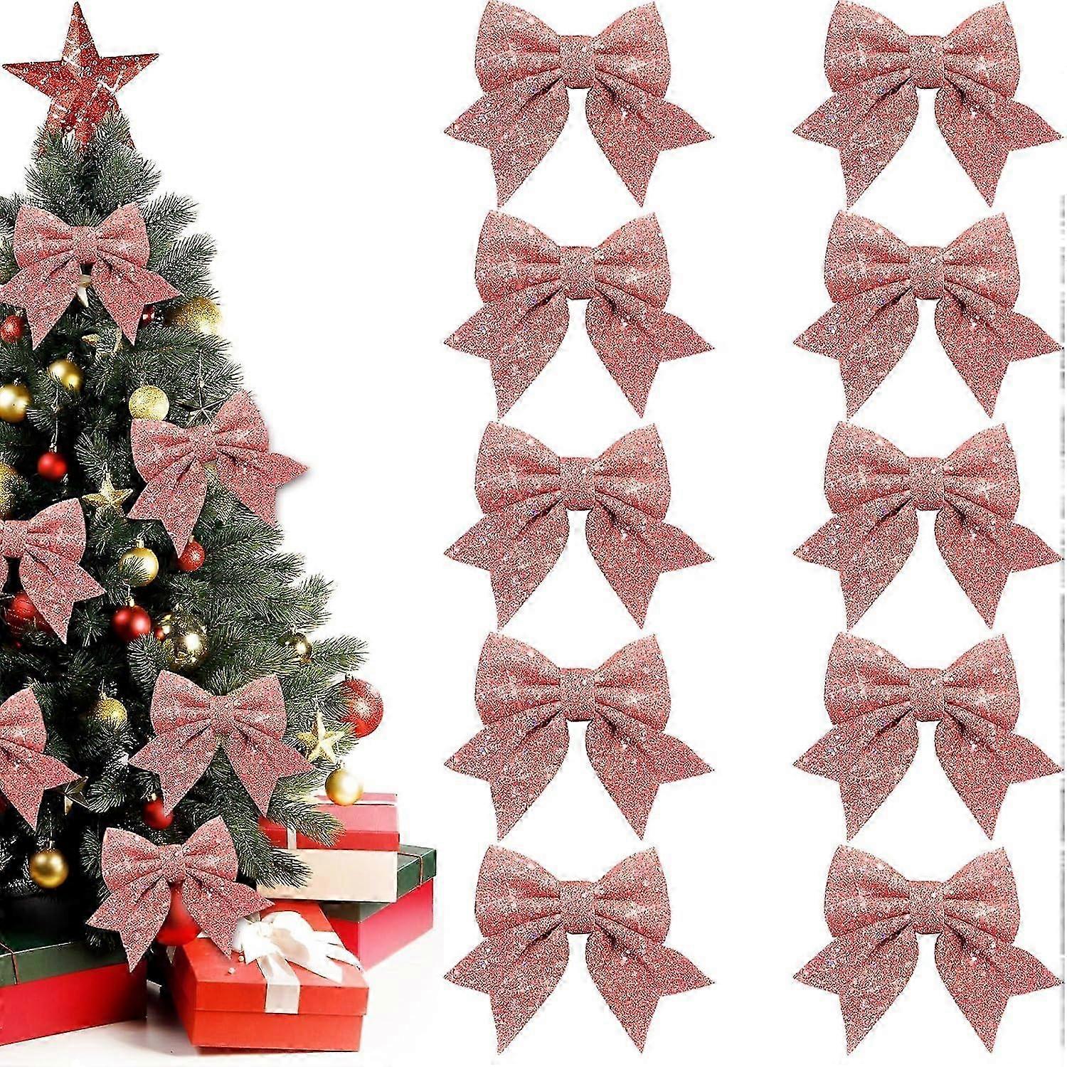10PCS Glitter Christmas Bows, Christmas Ribbon Bow Decoration, Pink Christmas Tree Bows, Glitter Christmas Bows for Gift Boxes, Christmas Trees, Birt Glitter Christmas Bows: We provide 10 pink Christmas bows, each Christmas bow measures 15 x 12.5 cm, which is a moderate size and can meet the needs of different scenes and make your Christmas decorations more eye-catching Widely used: Christmas gift bows are suitable for many occasions, such as Christmas, birthdays, weddings or daily home decoration. Christmas ribbon bows can be used on Christmas trees, gift wrapping, table arrangements, door and window decorations, etc., making every corner full of warmth and joy High-quality material: The glitter Christmas ribbon bow is made of high-quality pearl cotton, which is soft to the touch and elastic. The pink Christmas ribbon bows can bring a warm and romantic atmosphere, whether they are used as decorations on the Christmas tree or as part of interior decoration Exquisite detailsThe glittery Christmas tree bows have gold powder on the surface. The unique gold powder is exquisite and dazzling, sparkling under the light, adding a unique charm to your Christmas decoration Easy to installChristmas bows decoration is equipped with a metal ribbon for easy hanging on the Christmas tree, and also convenient to fix it on the gift box, making your gifts exquisite and beautiful. At the same time, this Christmas tree bows can be recycled and reused, making it a perfect choice for your Christmas decorations