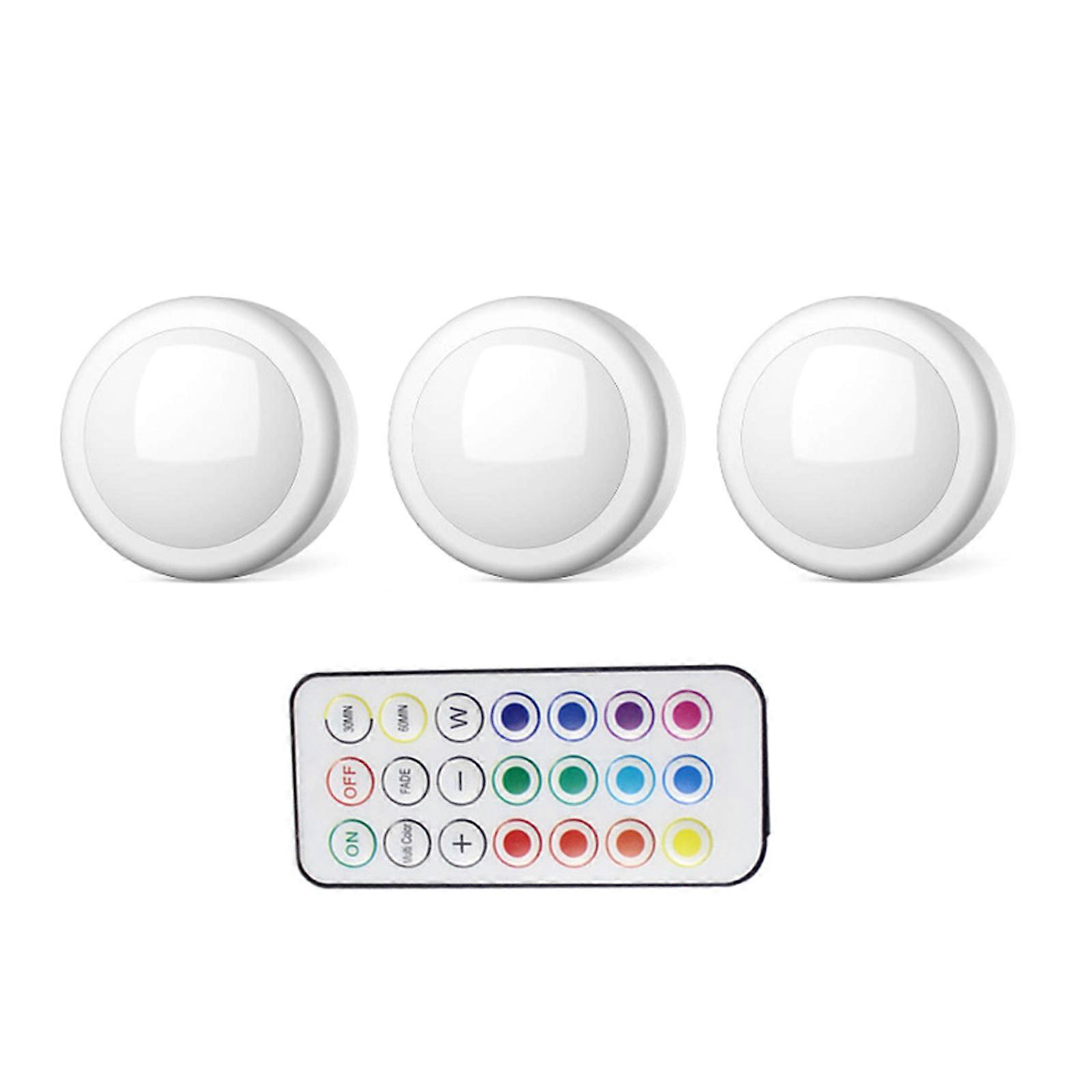 Remote Control LED Puck Lights Dimmable Under Cabinet Light Touches Sensor Decorative Night Lamp for Stairs, Bedroom White