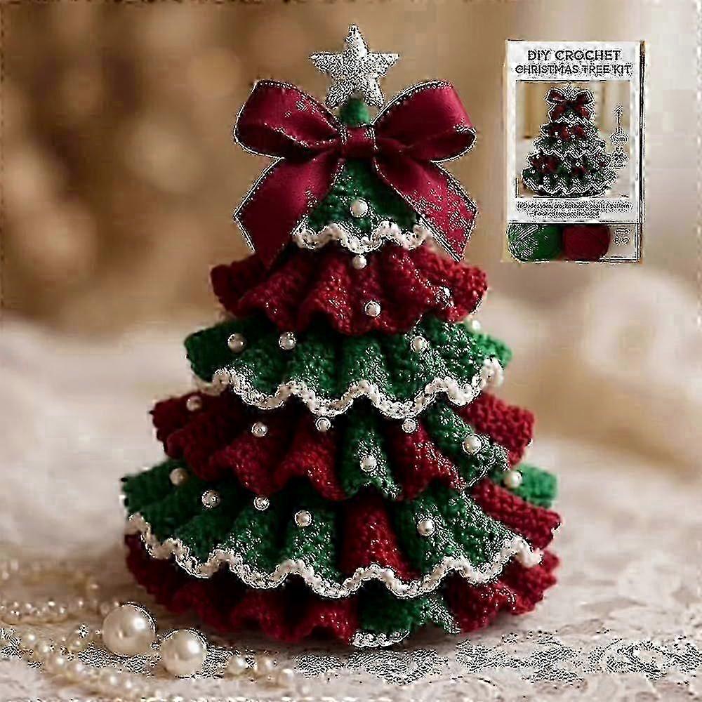 Crochet Christmas Tree Craft Kit with Pearl Bow, Yarn, Hook, Beads for Holiday Decoration Beginner Project Edition 1114