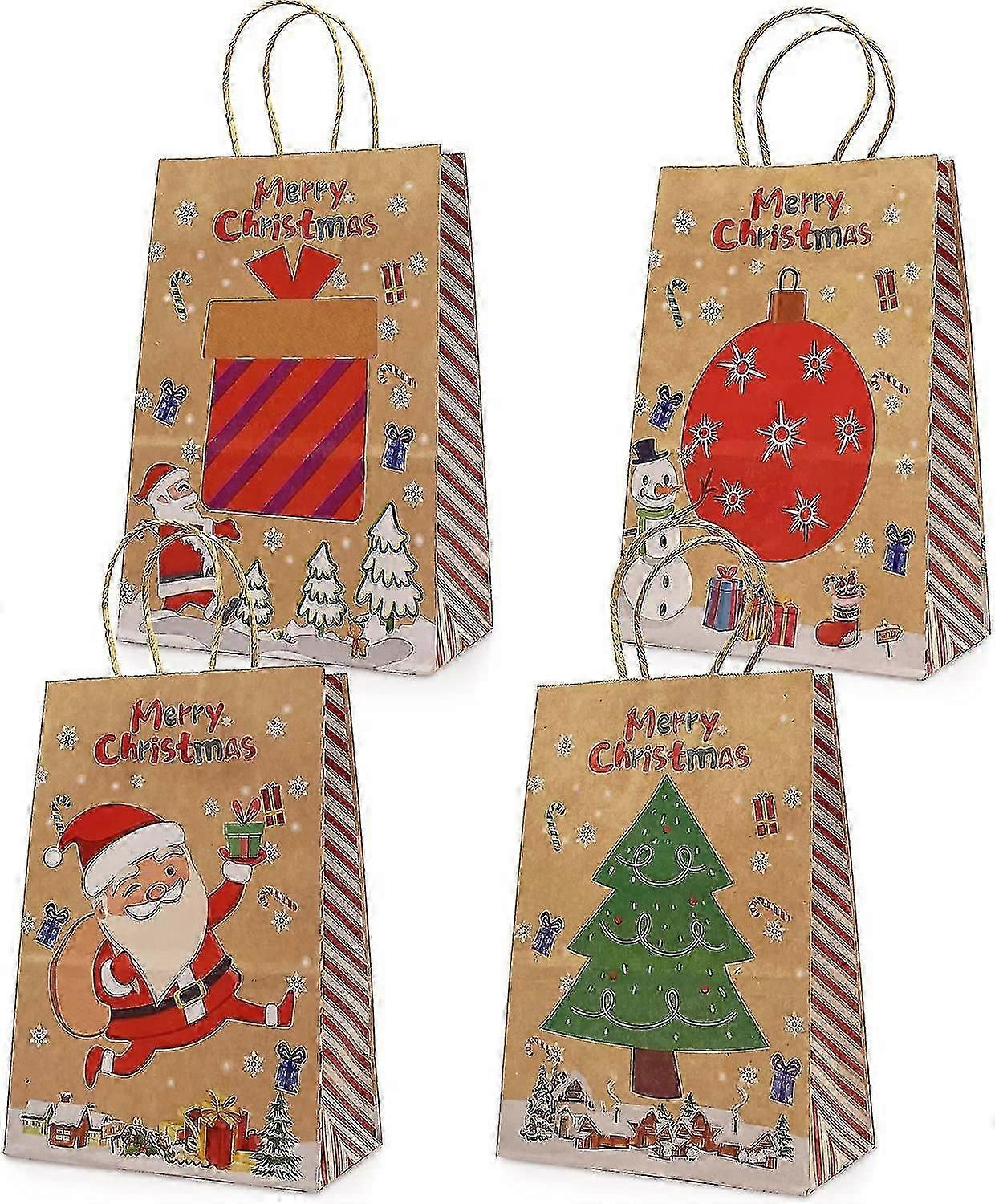 Christmas Gift Bag Kraft Paper Holiday Packaging Paper Bag, With Christmas Print Of Holiday Party, Supporting Christmas Gift Box Packaging @BUGU 1. Sturdy and durable material - our packaging bag is made of environment-friendly thick kraft paper, durable, not easy to break, and can be used repeatedly2. Exquisite pattern printing design - These paper bags have 4 kinds of prints, basically some classic and simple Christmas elements, such as Christmas tree, colored balls, gift boxes, and Santa Claus.3. Exquisite pattern printing design - These paper bags have six kinds of prints, basically some classic and simple Christmas elements, such as Christmas tree, snowflake, reindeer, gingerbread man, Santa Claus, etc.4. Extra surprises for holidays - These holiday bags are great for Christmas and other holidays. You can use it for holiday parties, Christmas gifts, gift packaging, Christmas decorations, etc.