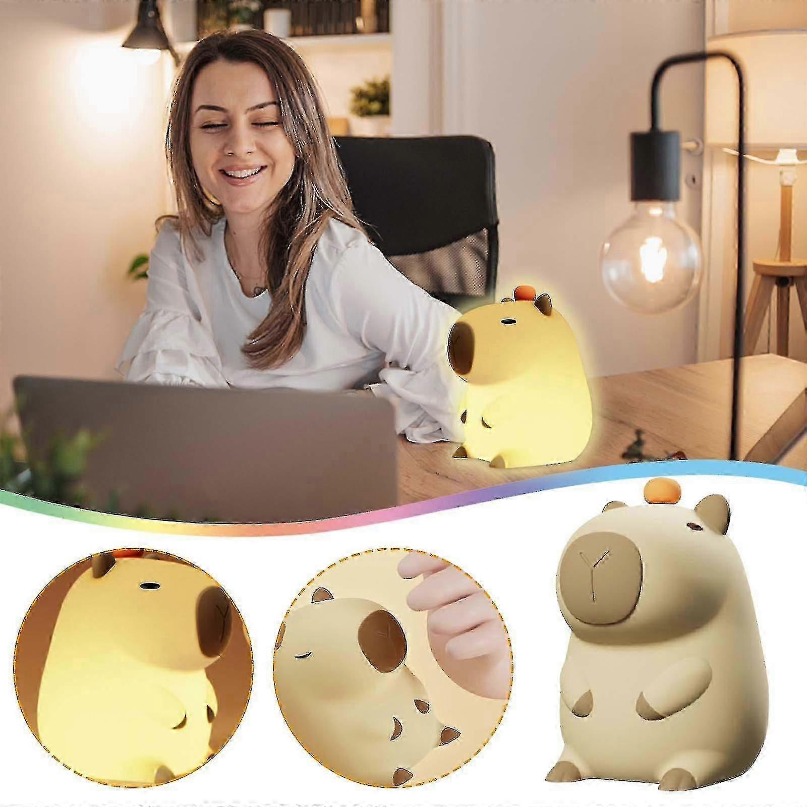 Guinea Pig Night Light Birthday Gift Children'S Guinea Pig Silicone Light, Copybara Night Light<br>Features:<br>The night, charging no trouble, the battery life of 9.5-34 hours<br>Two types of brightness can be adjusted, suitable for various scenes, can go anywhere.<br>Soft light, sleep at ease does not hurt the eyes, warm light, light up the long night.<br>Gently pinch the light, skin friendly more at ease, many functions, convenience at your fingertips.<br>Cute cute shape, Christmas children must tie night light.<br>Product Description:<br>Product weight: about 165.5g net weight<br>Product size: 98165110mm<br>Product material: silicone PCABS<br>Power input: 5V0.5A<br>Rated power: 0.5 W.<br>Battery capacity: 800mAh<br>Products include: night light *1, manual *1, data cable *1
