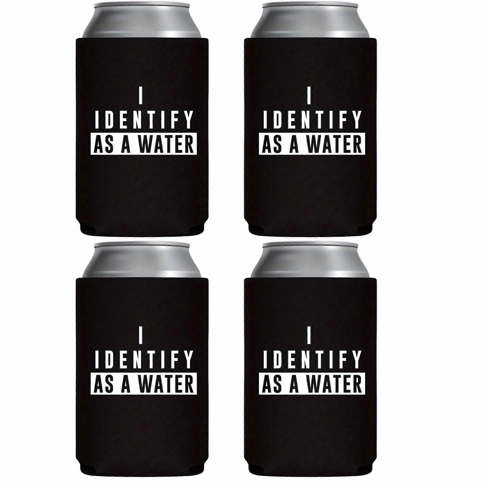 4 pack I Identify As A Water - Can Sleeve Cooler Insulated Drink Beer Hugger Coolies - Gifts for Dad from Son Daughter