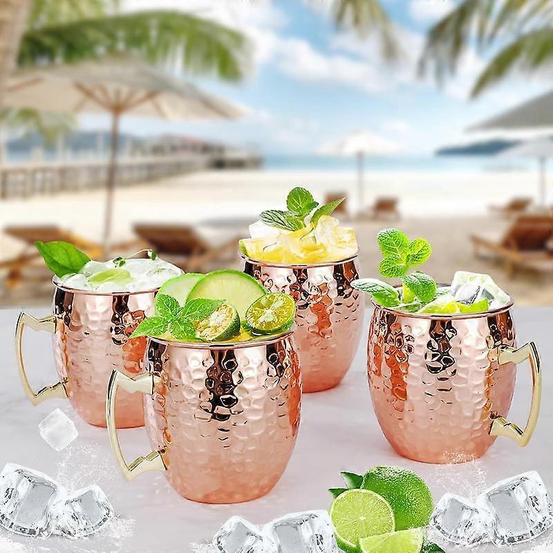 Moscow Mule Mug, 4 Counts/set Stainless Steel Lining Copper Cup with Handle, Drinking Cup for Wine, Beer, Cold Drinks, Bars, Parties, Tumble