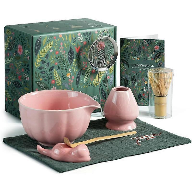 Matcha Kit, 7 count Matcha Whisk Set Includes Matcha Bowl with Spout, Whisk, Chasen Holder, Stainless Sifter, Scoop and Rest, Towel, Matc