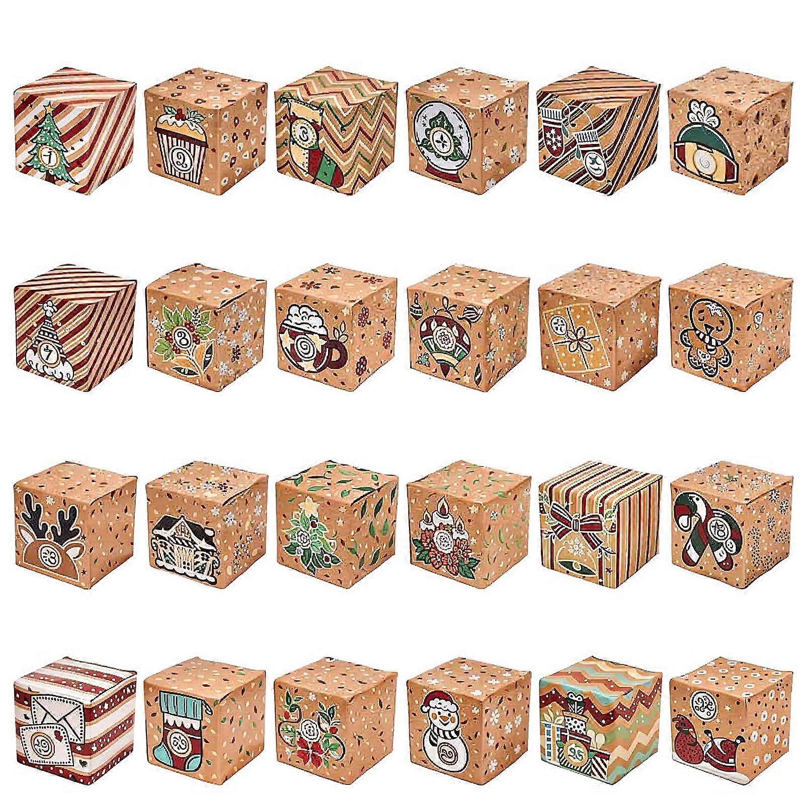 OurWarm 24 Pcs DIY Kraft Paper Christmas Advent Calendar Boxes, 24 Days Advent Countdown Gift Boxes, Xmas Holiday Decor