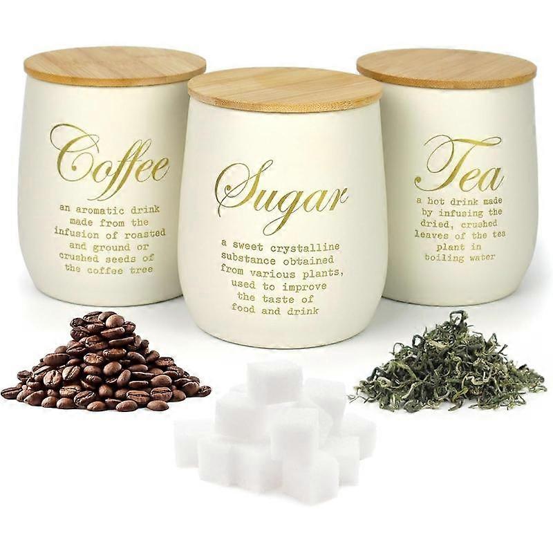 Coffee Sugar Container Set of 3,Farmhouse Storage Containers Jars,Airtight Metal Kitchen Canister Set with for Kitchen Counter Dining Roo