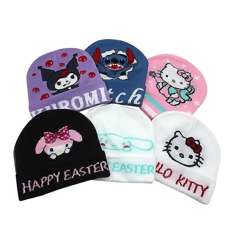 Anime Cartoon Kuromi Knitted Hat Stitch Woolen Hat Cute Anime Embroidered Pullover Hat Hip-Hop Hat