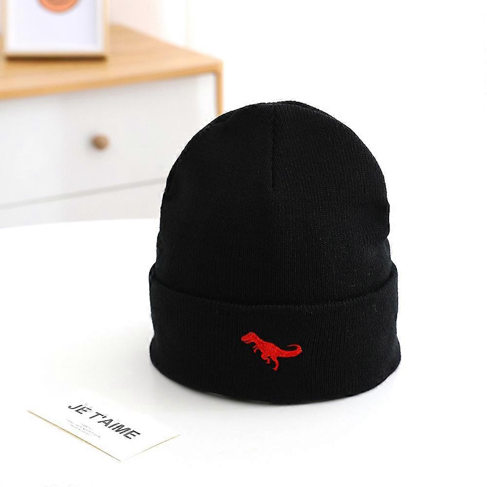 Children's Autumn And Winter Knitted Hat Boys' Embroidered Dinosaur Logo Warm Wool Hat Simple Windproof Hat